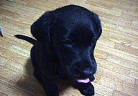 主人の知り合いのお宅のラブラドール・レトリーバーとフラット・C・レトリーバーの間に生まれた子のうち1ぴきを譲っていただいた。